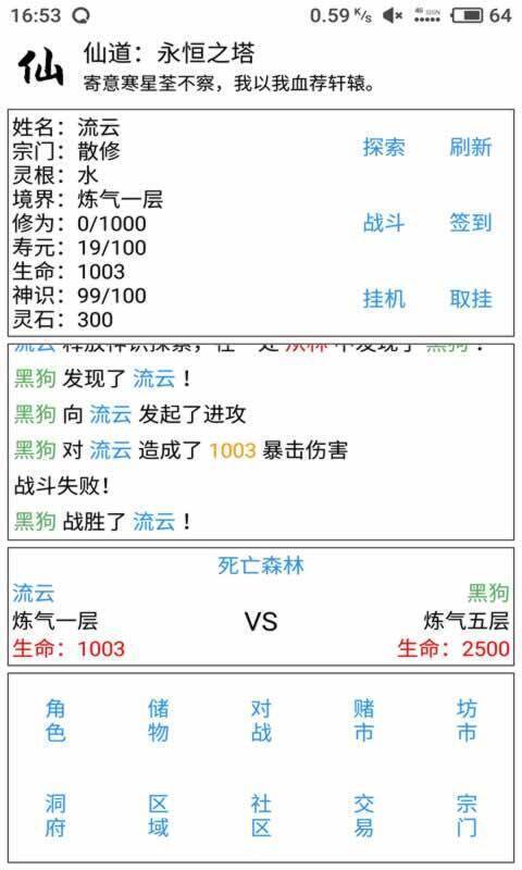 文字驱动的修仙冒险:通过文字描述与选择,让玩家真切感受修仙的艰辛与成长,沉浸式体验修仙世界。