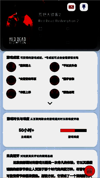 游戏库:提供丰富游戏资源,便于玩家探索新游。基于玩家真实评价,生成游戏评级、优缺点关键字、短评、完成时间和难度评级,助玩家快速了解游戏。