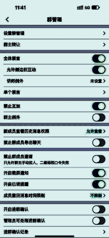 4、支持单聊和群聊,群聊功能丰富,可进行禁言、加入群精华等操作。