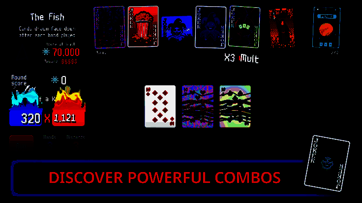 游戏中有超150张小丑牌,每张都具备特殊能力,能极大改变你的回合。