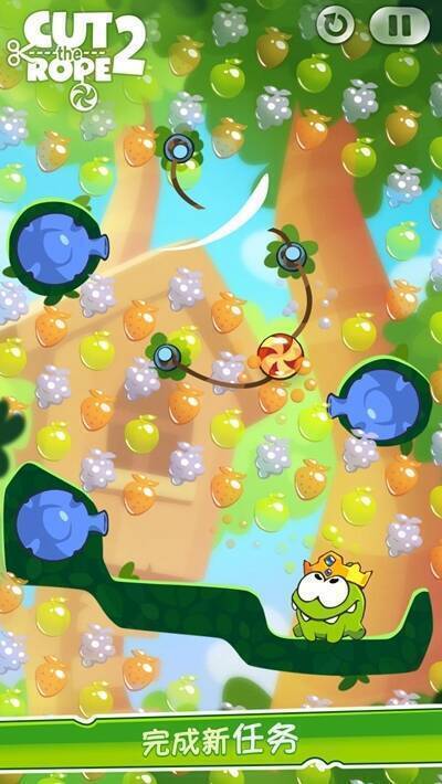 1. 玩家要剪断绳子,借助物理原理让糖果落入奥姆诺姆口中。