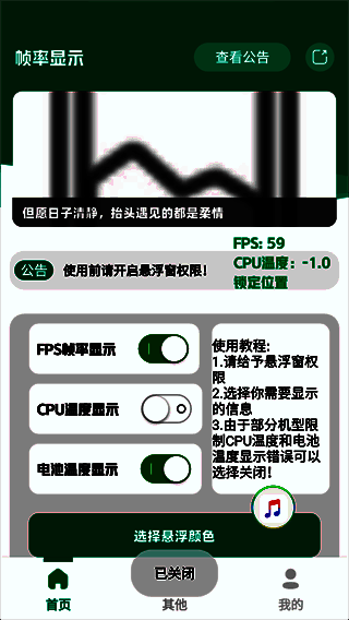 - 自定义设置:支持用户自定义应用设置,如刷新率阈值、显示位置和样式等。