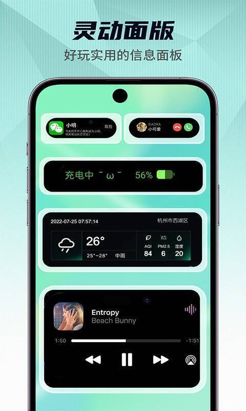 1、灵动岛独特体验:为 Android 用户带来独特的灵动岛感受,模拟 iOS 交互方式,增添桌面趣味性。