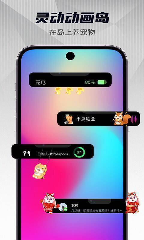 4、广泛兼容:与多种应用程序方案兼容,确保消息通知以灵动动态显示。