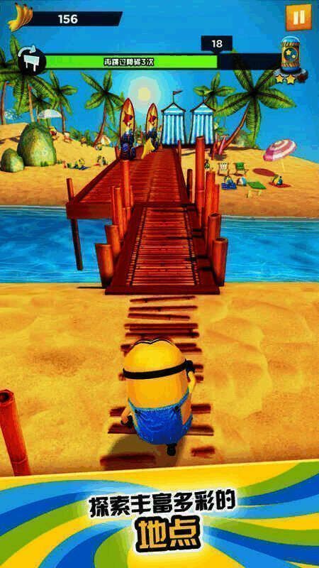 2. 玩家需在不断奔跑的场景中操控可爱的小黄人,通过手指在屏幕上滑动或点击来控制小黄人的移动方向。