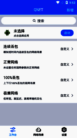 4. 新增全局网络选项,点击开始后,整个设备可支持弱网络环境并轻松适应。
