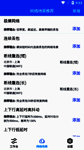 4. 软件模拟更贴合真实的弱网络场景,有20多个模板,效果出色。