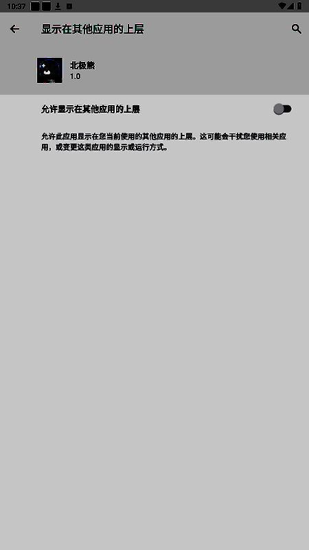 首次使用北极熊直装时,需先开启悬浮窗权限。
