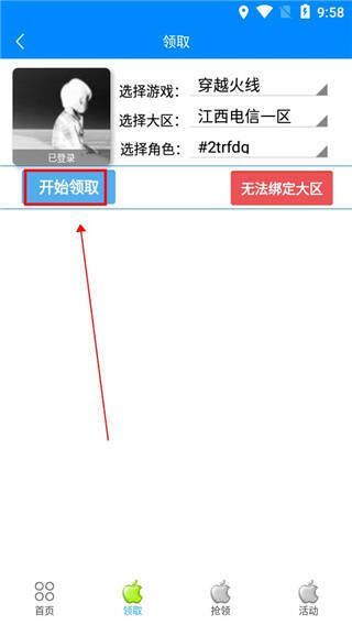 3. 点击开始领取,即可自动领取游戏道具。
