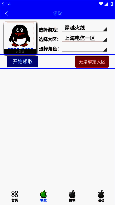 2. 登录后,可选择区服和游戏角色。