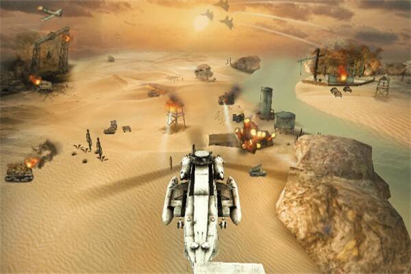 1、玩家通过简单操作,驾驶直升机在广阔空域飞行,击败敌军的战斗机、坦克、雷达设施等多种目标。