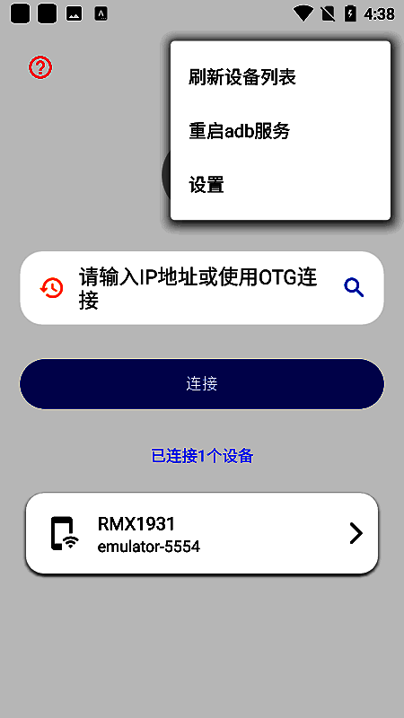 搜索电视的IP地址,确保手机和电视连接在同一WiFi网络中。在手机上运行甲壳虫ADB软件,输入电视的IP地址进行连接。