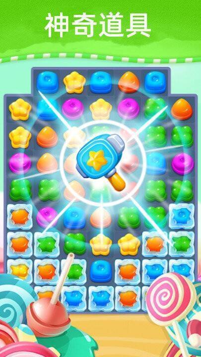 游戏属于经典三消类型,玩家通过匹配相同颜色糖果来消除,消除量越多,得分越高。它设有众多关卡,每关目标和障碍各异,需玩家施展策略完成任务才能继续闯关。消除糖果可赢取丰厚奖励与道具,助力攻克难关。其操作简便,界面清新,各年龄段玩家都能轻松上手。