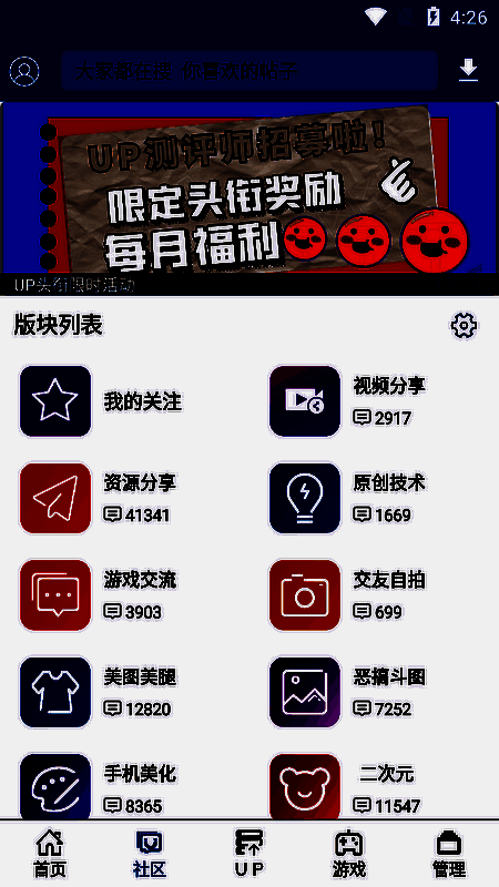5、人气旺:展示近30天人气量最高的UP资源。