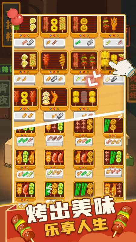疯狂烧烤摊红包版是一款趣味十足的休闲模拟商业游戏。游戏融合多元元素,玩家化身为烧烤小贩,依据客户需求巧妙搭配美食。操作简单,仅需拖动和点击,将相同烤串放一起使其消失,收获成就感。