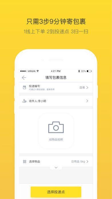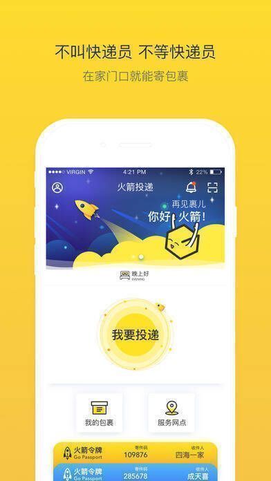 《火箭投递》是一款能让用户自主掌控寄件时间的软件,它能让用户省心、省时、省力地完成包裹邮寄。用户无需对包裹称重、填写单号,就能更快速地寄出包裹,还能实时查询快递位置,安心寄件。