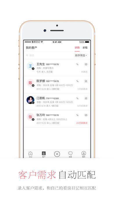 2. 询盘:依据客户需求自动匹配房源,快速筛选资料,支持面对面及一键分享房源,还能深度分析客户浏览分享行为。