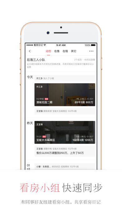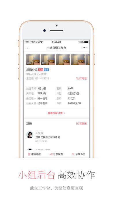 4. 协作:独特小组功能记录房源操作日志,让房源动态和跟进情况一目了然,便于合作开单。