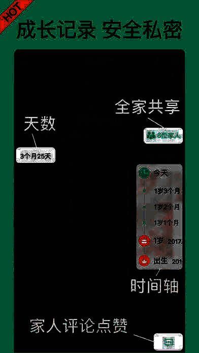 【安全备份】:拥有不限量银行级安全备份空间,照片永久保存,释放手机空间。添加照片可永久备份并同步给家庭成员,还能添加文字记录。