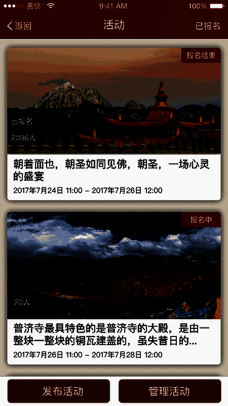 软件包含佛友圈、高僧大德、佛教音乐、佛历、附近的等几大实用功能。