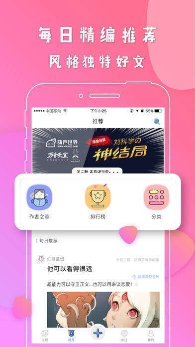 看文时可发弹幕,体验独特的弹幕阅读。若觉得长篇太累,这里有大量短篇美文;短篇不过瘾,也有大量长篇连载。看文字创作烦了,还有漫画创作。