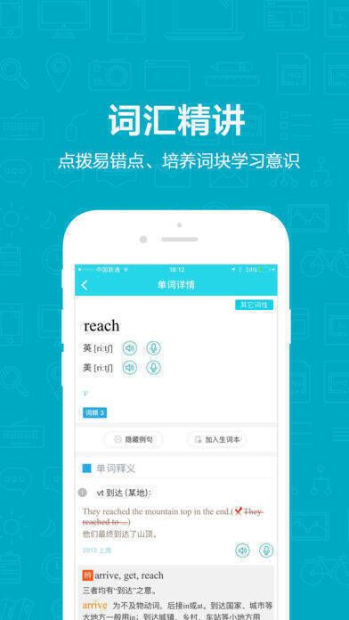 维词初中版是一款针对初中生定制的词汇学习APP,它重视词块,强调整句学习,会指出词汇的易错点,突出英汉表达差异,具备真人发音和跟读训练功能,能让学生清晰了解语音问题,助力学生利用零碎时间学习英语,切实提高学习成绩,是一款优质的学习教育应用和词汇学习软件。该APP拥有丰富的词汇库,可为用户量身定制学习计划,还提供真人发音、跟读训练等服务。