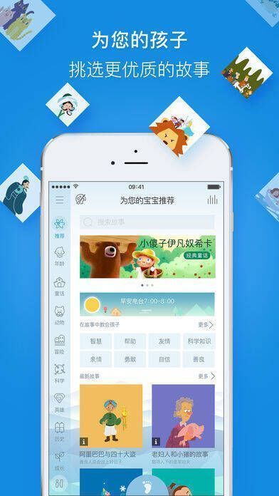 多角色演播营造“声”临其境之感;精选故事且每日更新;有七大故事主题满足孩子喜好;围绕五大教育维度“音”材施教;科学分龄,贴心推荐适合孩子的故事。