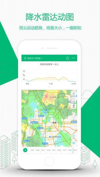 彩云天气能在手机地图上流畅展示整个城市的降雨量动画,使用户直观看到当前地区降雨量的变化。借助它,用户能直观了解风暴路径,自行预测未来降雨情况。