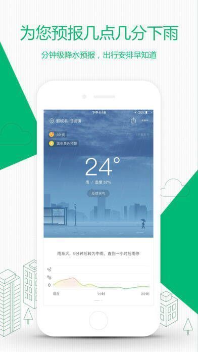 通过手机定位,与多数只能给出“局部地区阵雨”笼统预报的天气软件不同,彩云天气能依据用户当前位置,精准预报未来一小时内降雨和雨停的具体时间,助力用户制定出行计划。
