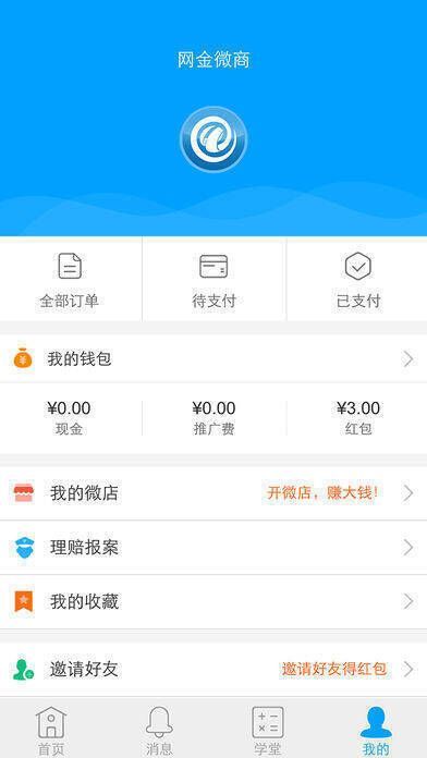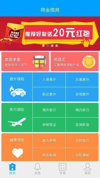 【展业】在网金微商上分享保险产品、个人微店,就能轻松开展业务,让保险消费更轻松。【增员】一键分享,推荐同伴加入网金微商,线上组建团队,一次性推荐可获永久收益。【学堂】可随时随地学习展业技巧、保险知识、产品介绍,还能掌握最新时事动态,结合保险理念进行线上宣传,开启保险行销新征程。【智能管理】具备快捷投保、便利的订单管理、清晰的团队管理统计、即时提现等功能,打造智能化管理中心。