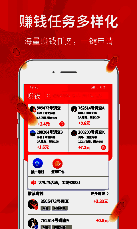 3. 做任务赚钱:完成任务,每次都会有惊喜收获。