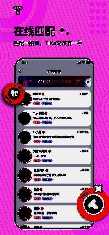 TiKa语音app是一款助力你成功脱单的语音交友应用。别羞涩,莫担忧,它能契合你多样的交友需求。社恐用户可选择文字聊天,还能通过摇一摇随机匹配,和感兴趣的人尽情畅聊。软件里还有众多小游戏,助力两人交流更顺畅。