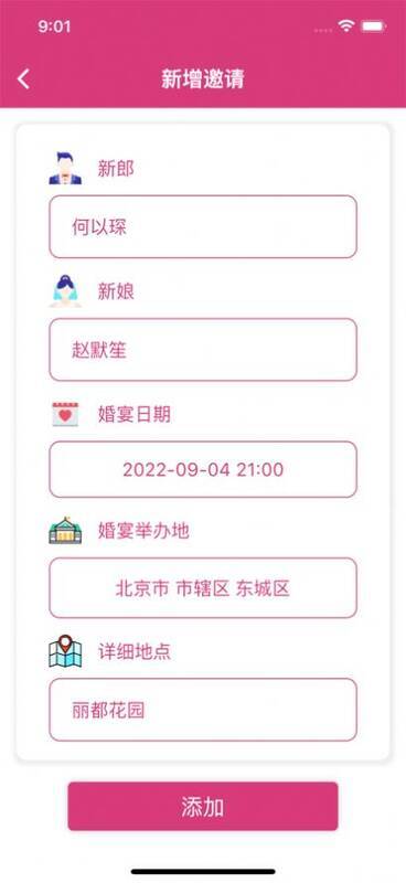 3、在“新郎”处输入暗号:dsx666666,其他内容随意填写。