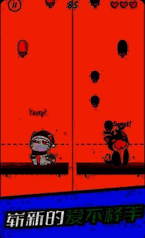 猫咪二重奏苹果版是一款简单易上手的音乐节奏闯关游戏。玩家操控左右两只猫咪在关卡中接住从天而降的美味蛋糕,吃到的蛋糕越多,得分越高。玩家还能和可爱猫咪互动,为它们提供食物、水和舒适住所来饲养,更有超萌猫咪外观等你获取。