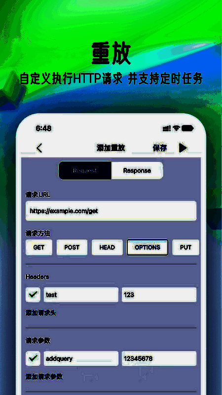 4. 重放:自定义执行 HTTP 请求,并支持定时任务。