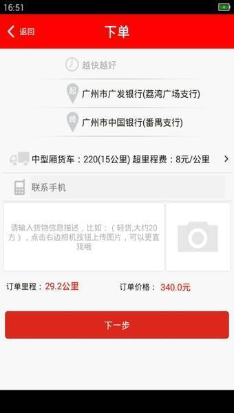 《1号货的》是广州米豆信息科技有限公司旗下的移动互联网产品,是免费找车拉货的手机软件。它由媒体、互联网、物流等跨行业管理精英组建,研发阶段就获几百万元天使投资,公司立志成为中国短货运行业的全民调控中心。该软件能实时满足用户货车货运需求,让货主和司机直接沟通,减少中间环节,节省时间,找货车用手机轻松搞定。