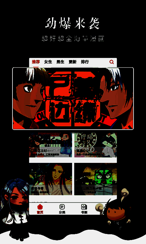 2、有众多特约大触创作,像鸠也的《勇者是女孩》、Asoul的《浪漫传说》、L、M的《少年PMC》、猫猫佳的《哪吒传》等热门大作每日更新;