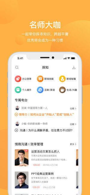 这是一款出色的知识学习平台应用,拥有海量优质课程,涵盖七大类型的课程内容,由行业大咖精心打造高品质内容,定能让你收获满满。音频、视频、电子书课程任你挑选,还能离线缓存,随时随心学习。《探知》APP 以探寻优质知识为宗旨,精选行业大咖,从干货入手,以技能为落脚点,让你在工作中更加得心应手,生活中更加游刃有余。这里精选 200 门大咖好课和著名畅销电子书,任选一门,都能让你收获颇丰!欢迎下载使用。