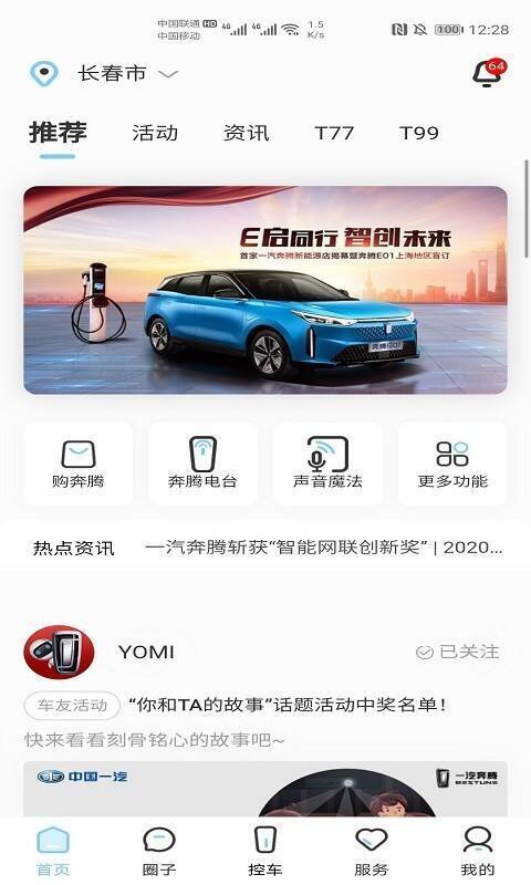 奔腾YOMI由奔腾FAN全新升级而来,拥有汇、驾、享、通四大功能体系,为奔腾车主提供全面支持与服务,还有多重会员尊享权益。觉得不错的朋友欢迎下载使用。