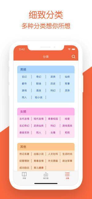 2、新增分类页面,方便你挑选喜爱的小说类型。