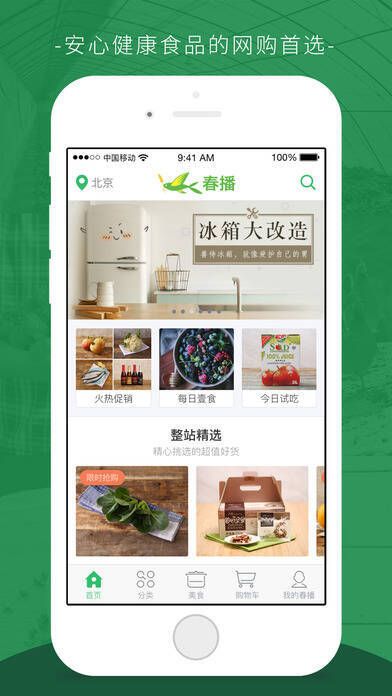 《春播抢鲜版》是一款专门为健康家庭量身定制的健康食品选购软件。在这里,不管是各类生鲜蔬菜,还是茶余饭后的美味甜点,都能轻松买到。所有食品均确保安全,让您能惬意享受健康生活。