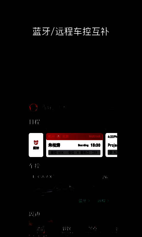 拥有车载蓝牙遥控系统,近场利用蓝牙控制汽车,远场实现远程控制;支持扫码快捷登录车机,手机扫码无缝连接;能将POI发送到车辆,点击即可将手机地址发送至车载机器启动导航。