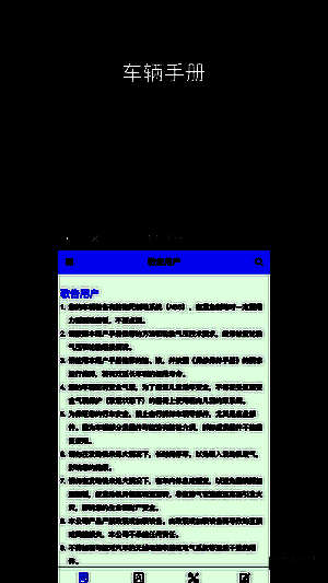 设有车辆使用手册,方便查询不熟悉内容;一人一号连接爱车,不受时空限制,随时查看与操控;远程控制需牢记安全码保障车辆安全;只要有GPS信号就能确定爱车位置。