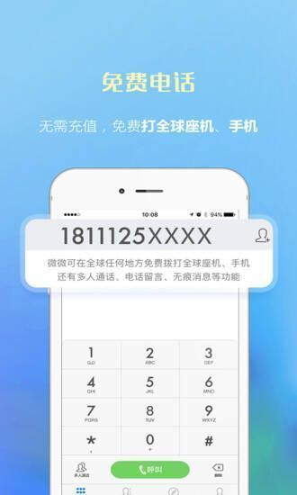 话费高昂、常出差或打不起国际长途?《微微电话》可免费拨打全球座机、手机,即便手机停机也能拨打,对方无需安装。若双方都安装,可享免费高清语音、视频通话。网络电话易被误认骚扰?《微微电话》显示真实手机号,避免被拦截,还能更换靓号,摆脱中介、推销电话困扰。想记录重要电话?一键开启录音,内容存本地随时收听。发消息怕隐私泄露?语音、文字、图片、位置及丰富表情,无痕消息阅后即焚。短信发祝福太单调?用《微微电话》玩出个性。多方通话能随时召集最多100人会议,参会人员无需安装。