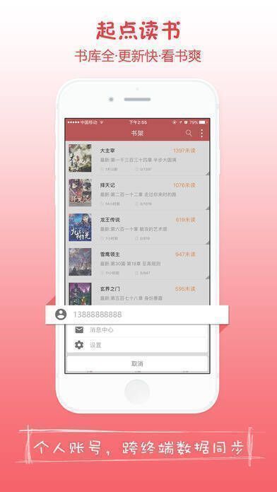 4、【云端同步】:书架、阅读进度、书签、笔记自动进行云同步。