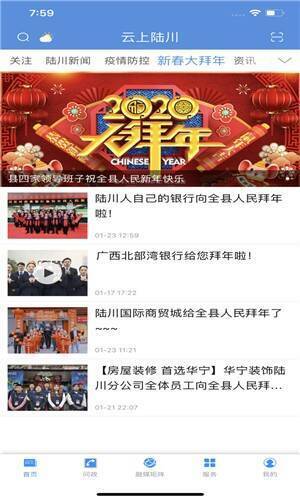《云上陆川》是一款专为陆川当地打造的优质资讯新闻阅读软件,每日精彩资讯不断更新。用户能随时阅读当地及周边最新新闻,还可体验诸多便民生活功能。