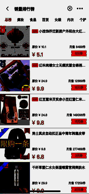 3、涵盖服装、美食、家居日用、母婴商品、户外运动、美妆护肤等多达十几种品类。