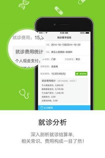 2. 随时解读就诊信息,省去去医院的繁琐,能掌上查询就诊记录和花费。