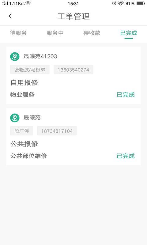 1. 能在手机上解决众多业主问题,依据业主订单需求提供服务。