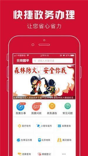 4、“北京昌平”APP 拥有“去哪儿玩”“有保障”“要结婚”“开公司”“生小孩”“我的家”“享晚年”等多个本地化生活服务版块,覆盖养老、医疗、婚姻、生育、工作、旅游等多领域,让本地居民享受一站式服务。